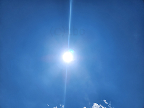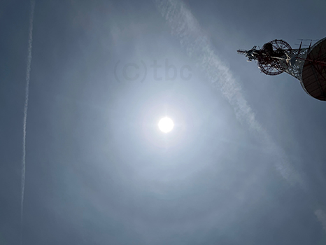 太陽の周りには、ぼんやりした光の輪、日暈(ハロ)が出現。天気下り坂のサイン。