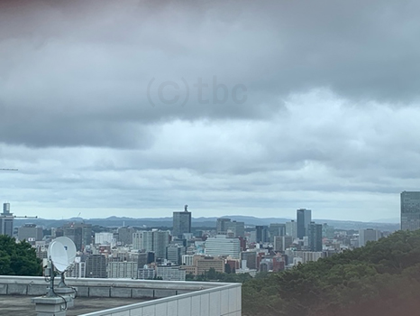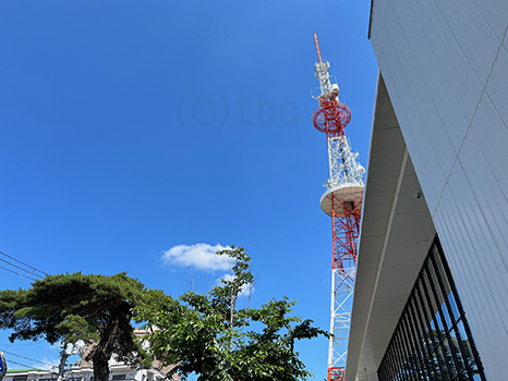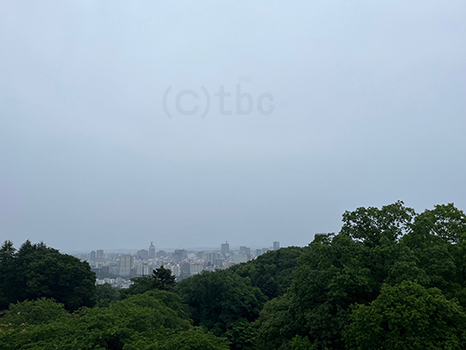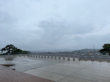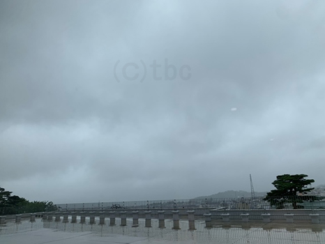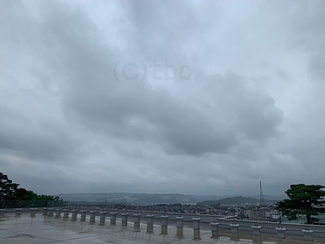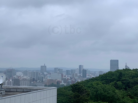 午後1時半頃のtbc本社周辺は、雨がやんでいた。