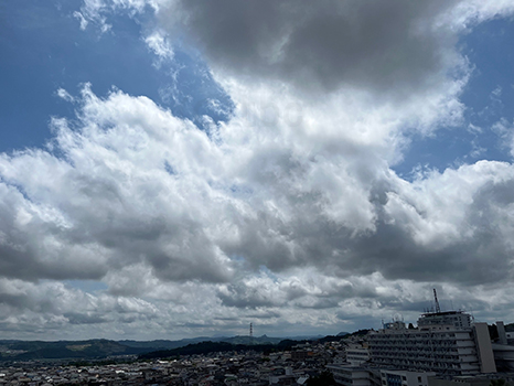 西の空は雲多め。急に空が暗くなり、冷たい風が吹いてきたら急な強い雨や落雷に注意。