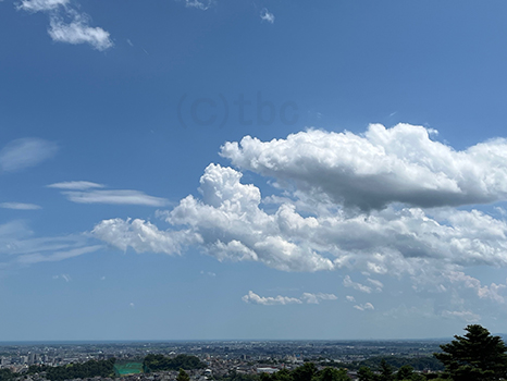 きのうに引き続き積雲がぽこぽこと浮かぶ青空。西風がやや強い。