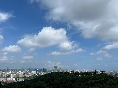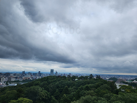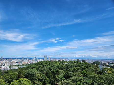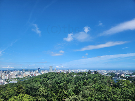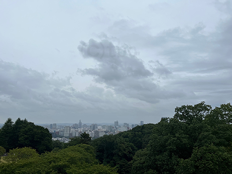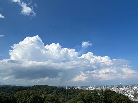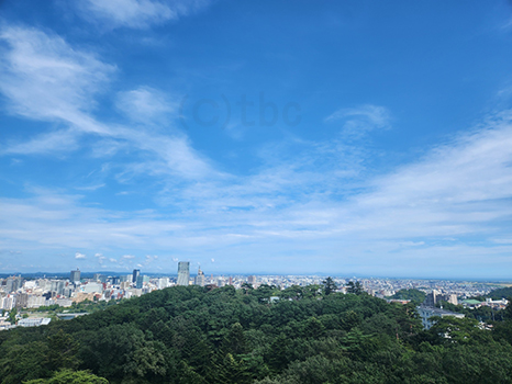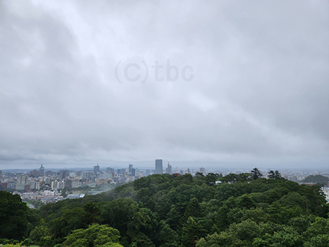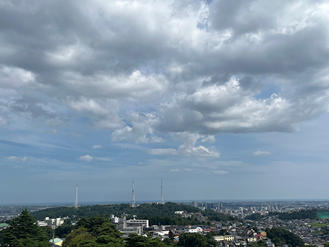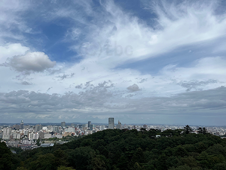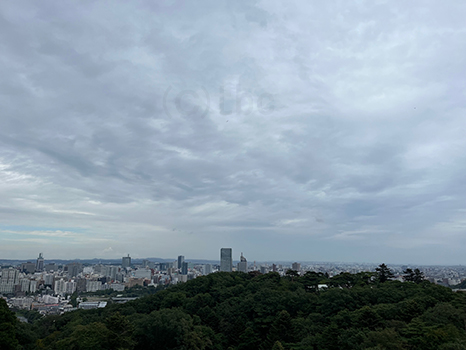湿った空気に覆われているが、昼過ぎの仙台は晴れ優勢。