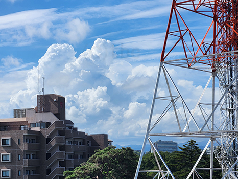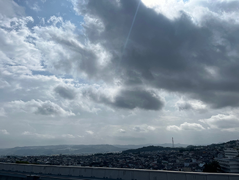 西の空にはやや発達した雲が出現。きょうも天気の急変に注意が必要。