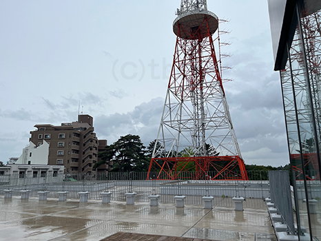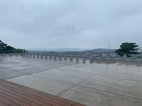 tbc4Fのテラスは雨で濡れている。
