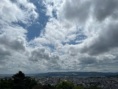 西には少し発達した雲も。天気の急な変化に注意。