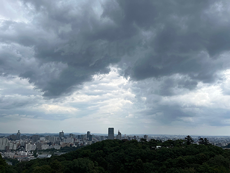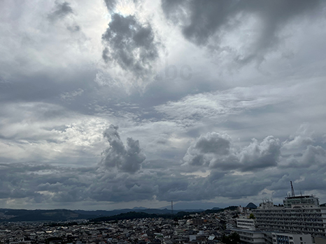 雨雲通過中。いつ雨が降ってきてもおかしくない。