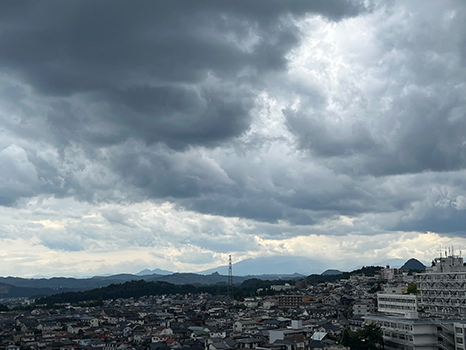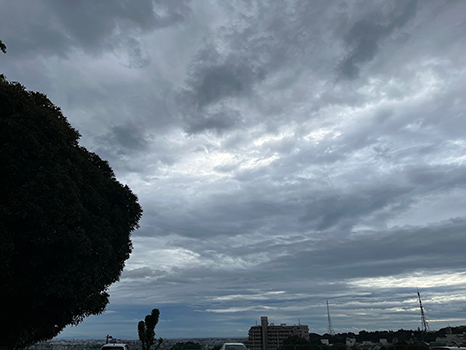 南の空。湿気が多く、今にも雨が降ってきそう。