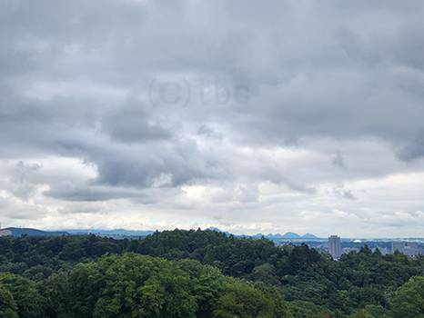 厚い雲に覆われているが、蔵王連峰の稜線が見える。