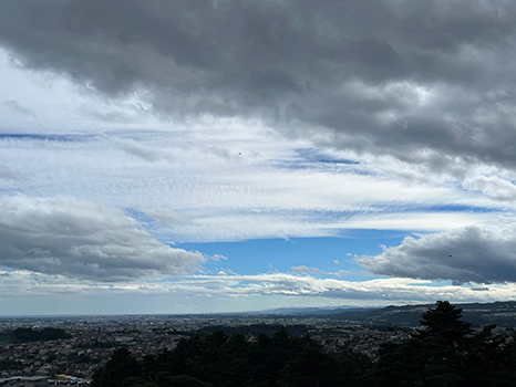 南の空。他の方角よりが雲さらに多め。