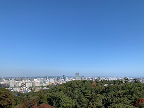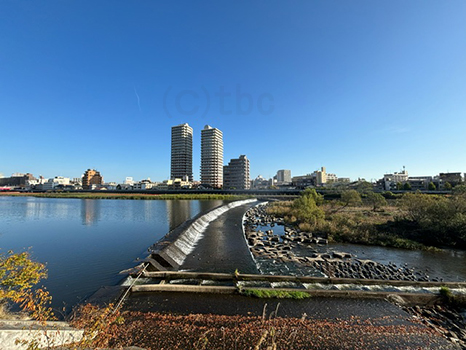 取材で訪れた広瀬川。川に景色が反射して映っている。