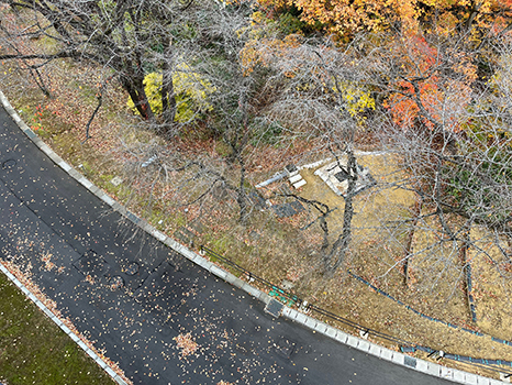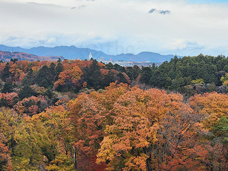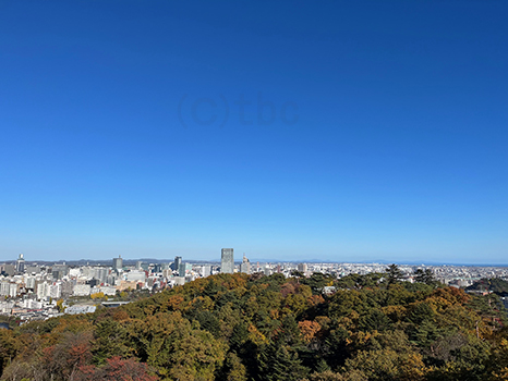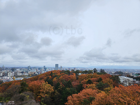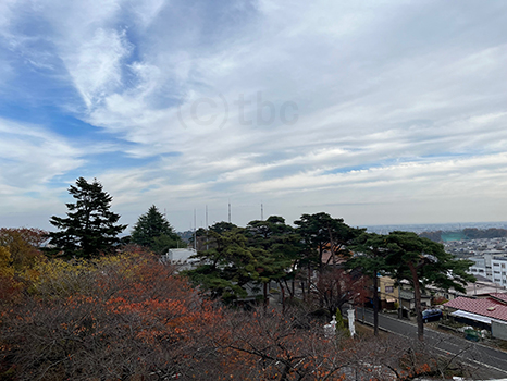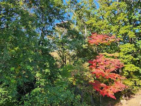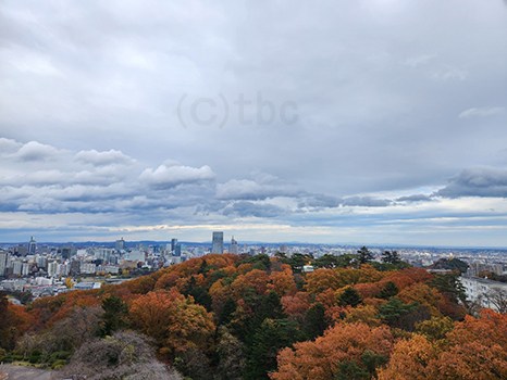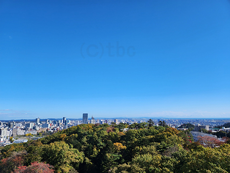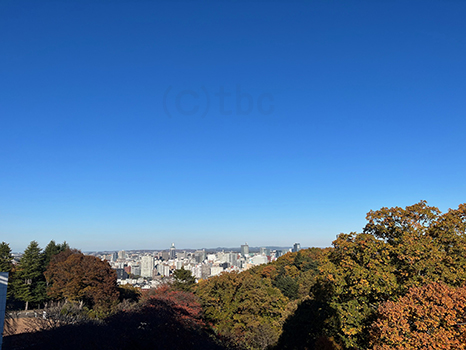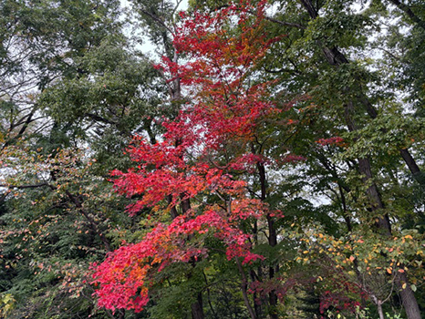 tbc構内には真っ赤に色づいたカエデが見られる。
