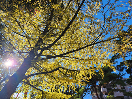 tbc構内のイチョウの木は黄葉真っ盛り。