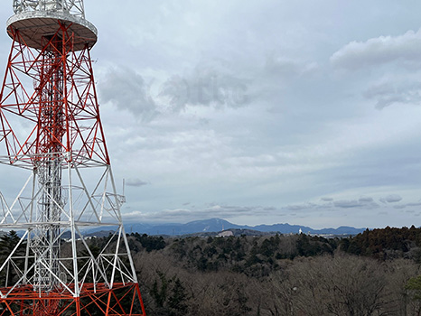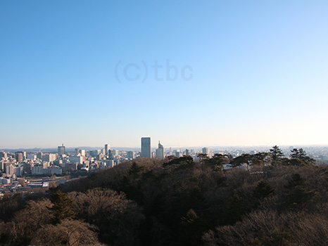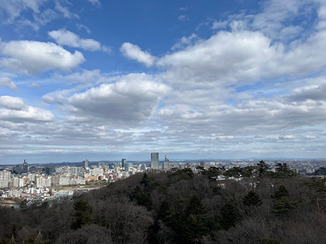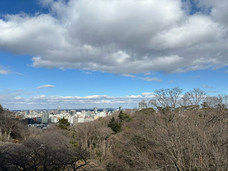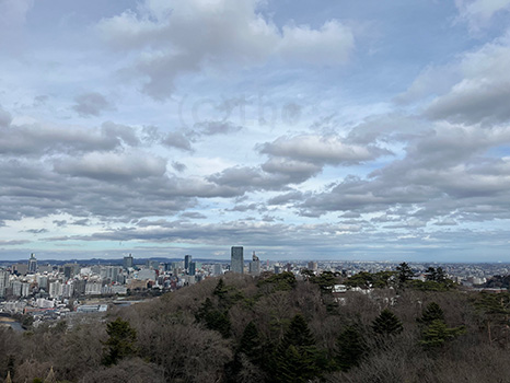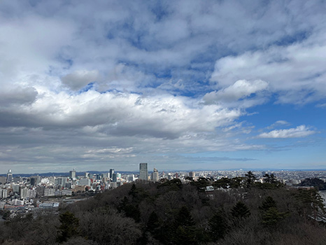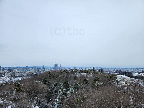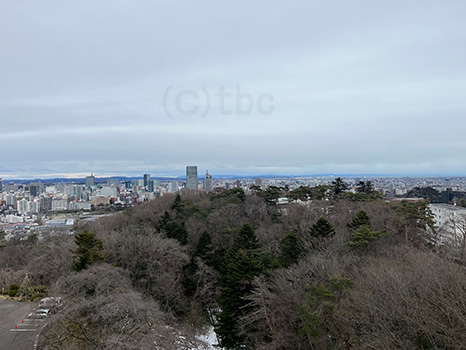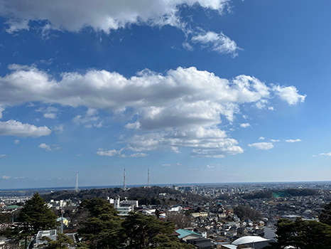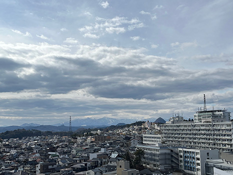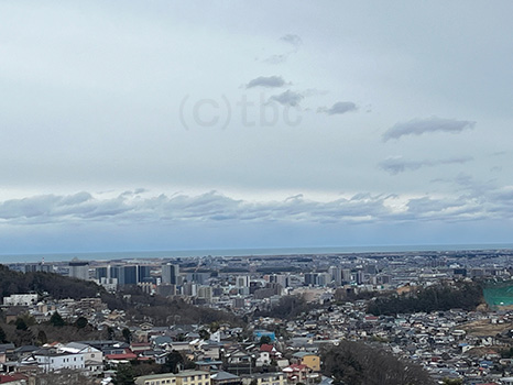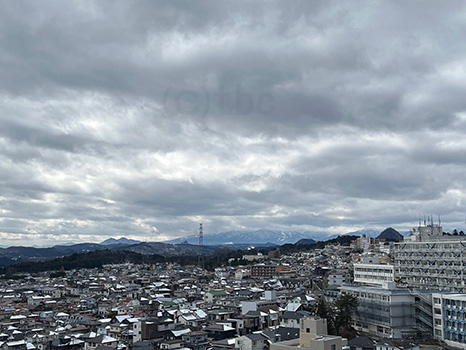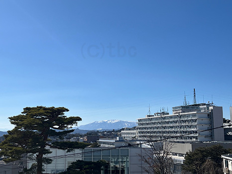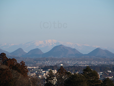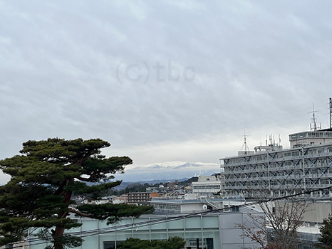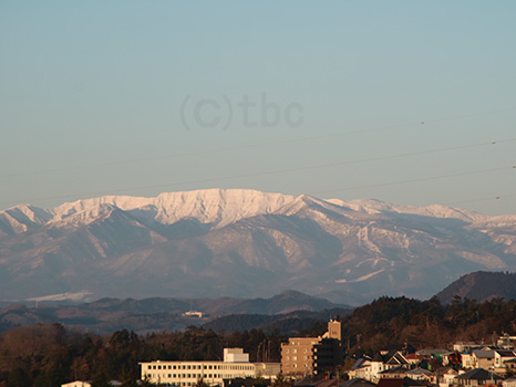 遠くまで見渡せる。蔵王連峰の上部は雪で真っ白だ。