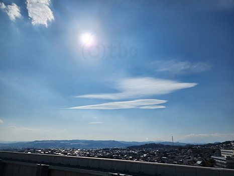 西の空には朝からずっとレンズ雲(吊るし雲)のような雲が出ている。