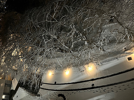 南岸低気圧の雪らしく、水分がやや多くシャーベット状に感じる。