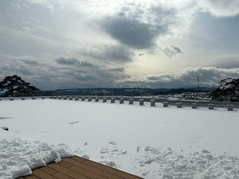 気温が低いため屋上の雪はなかなか解けず、まだ一面真っ白。