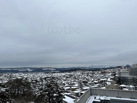 雪雲に隠れて蔵王連峰見えず。