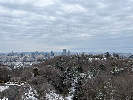 午前は雪が降った時間もあったが、青空が広がってきた。