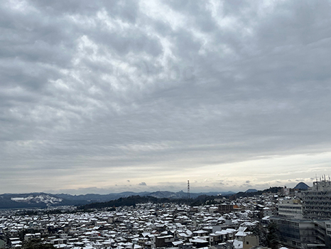 雪はほぼ止んだが、まだ厚い雲に覆われている。