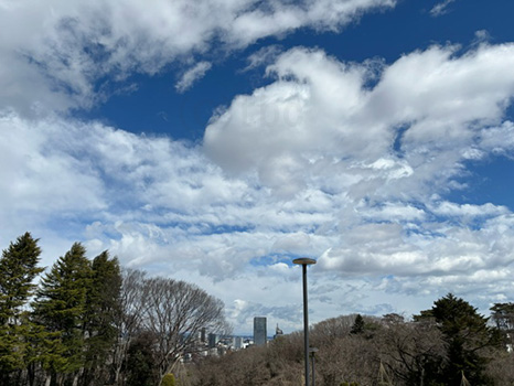 晴れ間が広がっている。花粉が多く飛散。