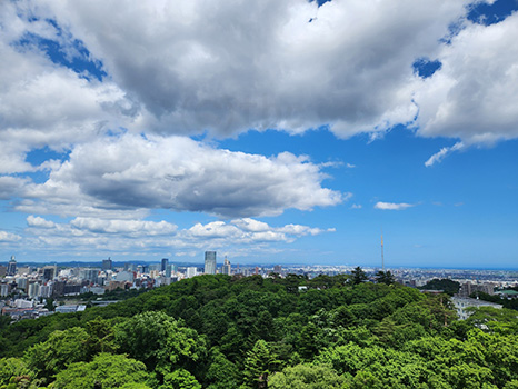 今年初の真夏日となった仙台市内。とにかく日差しが強烈だが、少し海風が吹いてきた。