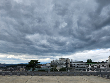 雨雲から遠い北の方は見通しが良いが、泉ヶ岳のあたりにはべったり低い雲も。