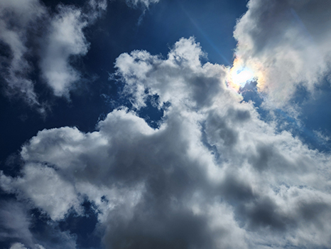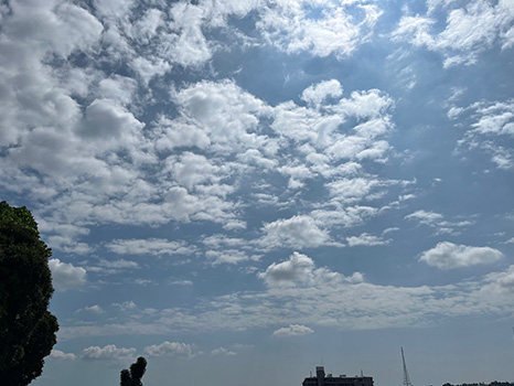 湿った空気の影響で綿のような雲が多いが、晴れ間もまずまず。