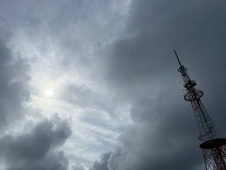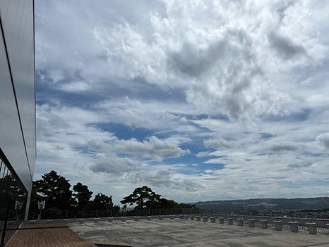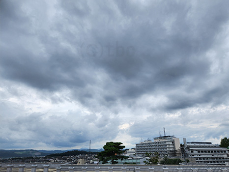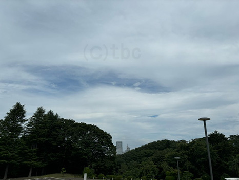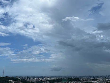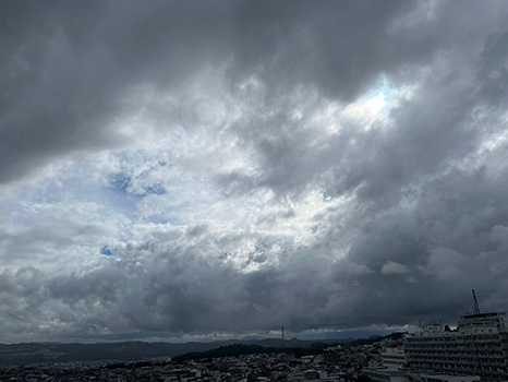 雨がやんだ後、午後1時半ごろの空。まだ東や南の方角には暗い雨雲が見られる。
