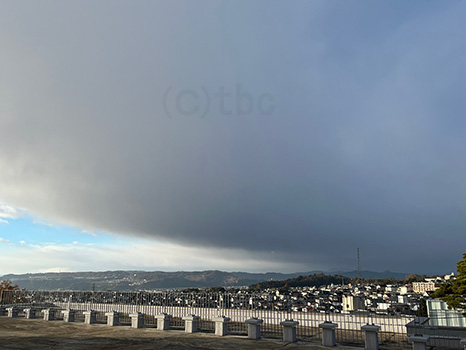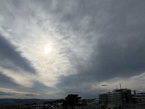 昼過ぎ。「冬型」が緩んでいる途中。東部中心に晴れてきた。
