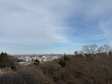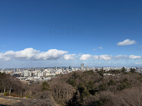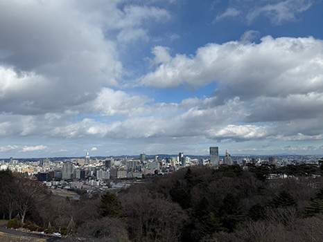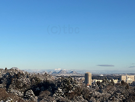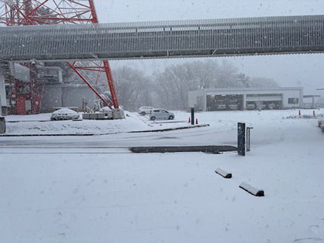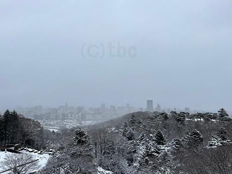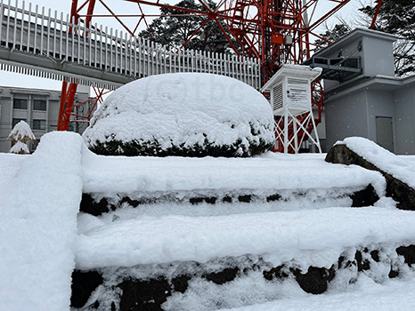 雪景色。午前7時現在、仙台の積雪は4センチ。