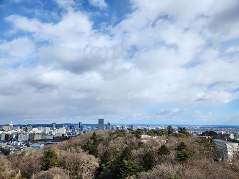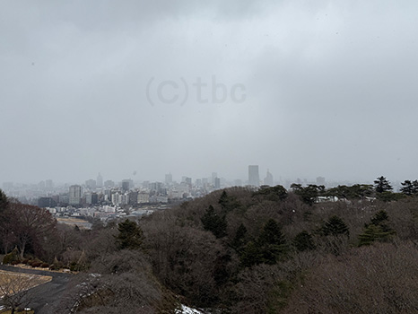 七ツ森の方面は少し霞んでいるように見え、雪が降っているかもしれない。