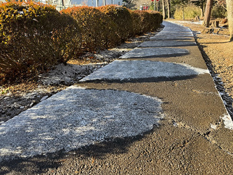 昨夜うっすら積もった雪は、日陰の部分だけ残っていた。