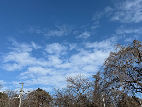 朝から概ね晴れて、日差しは力強いが気温は低い。