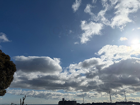 冬型の気圧配置は緩んできたが、寒気の影響で雲がやや多め。