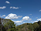 気圧の谷の影響で綿雲が多く浮かぶ青空。西風がやや強い。