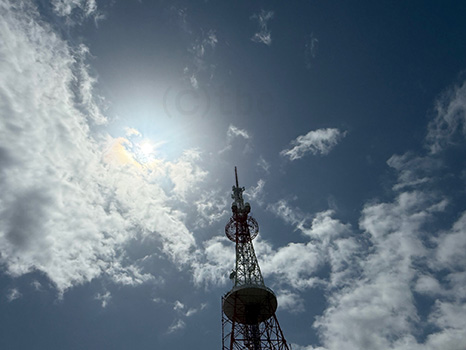 高気圧に覆われているが薄い雲が多い空。土日に続き3日連続で西風がやや強い。
