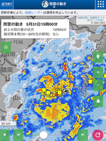 午後になって仙台中心に活発な雨雲が流れ込む。