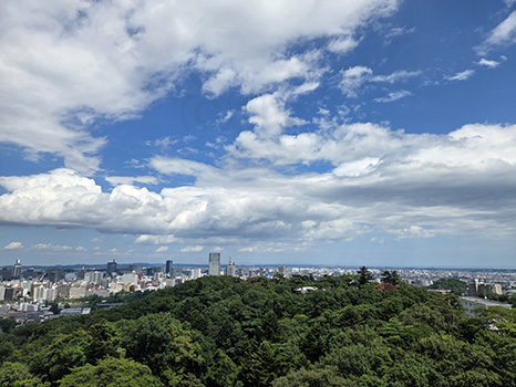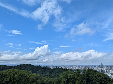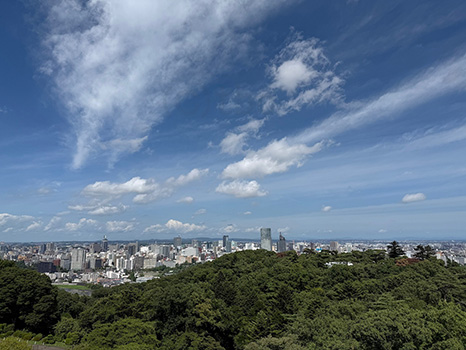 青空広がる。仙台処暑すぎてもまだ猛暑。