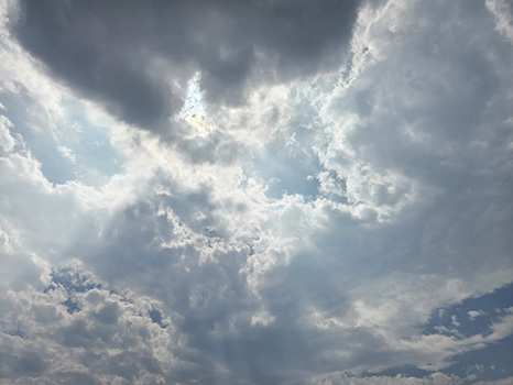 朝まで降っていた雨がやみ、昼頃には雲にすき間が出てきた。