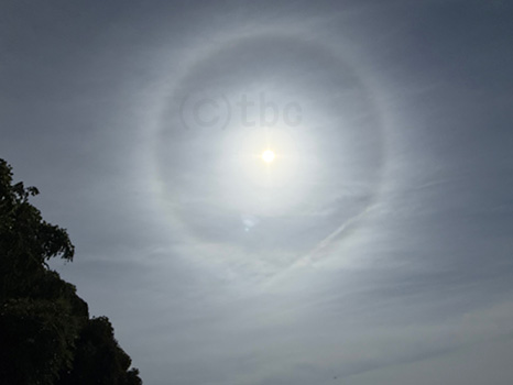 ハロ(日暈)出現。今回は天気が崩れるサインにはならないようだ。