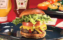 人気のチーズバーガーはケチャップとマスタードを好みでかけていただきます。