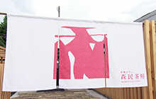 お店のロゴデザインは甘酒の行商のイラスト。ご先祖様が甘酒売りからスタートした森民酒造、そのリスペクトも込めたものだそう。