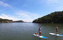 奥松島を遊びつくす活動基地。爽快SUP体験(6~11月 小学生以上)が楽しめます。