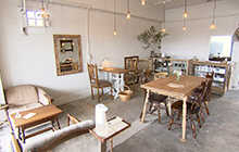 ひとつひとつこだわりのテーブルや椅子、ランプ。ゆったりと時間を過ごすことができるカフェです。