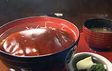 千厩町と言えば“あんかけかつ丼“。3代受け継がれる甘酸っぱいあんは、一度食べたら忘れられない熱々てりてりトロリ美味。