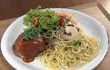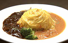 以前のお店でも人気だったオムライスはダブルソース、たまごのドレープもきれいです。奥様が作るスイーツは季節限定のものも。