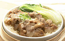 ※豚肉ロースと厚揚げの蝦醤油蒸しご飯(スープとセット) 858円