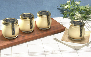 インドネシア産の高級バニラビーンズの風味が豊か。竹鶏ファームのたまごのコクとなめらかな食感。あっという間に瓶が空になってしまう逸品です。取り寄せ、催事などで購入できます。