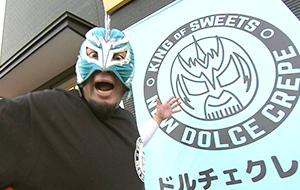 宮城生まれのマスク・ド・ドルチェさんは元格闘家。もともとスイーツは好きだったといいます。修業で滞在したヨーロッパでクレープに魅了され、第二の人生の契機となり、東京などでの店舗展開を経て、今年、地元宮城で提供を始めました。