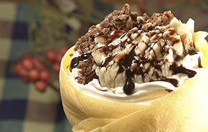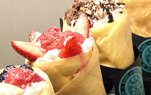 クリームも地元旬フルーツもたっぷり。また、お食事系のクレープも人気です。