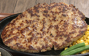 ちょいデカハンバーグは通常の2倍の大きさ300g。しょう油ベースの秘伝だれをかければ、もう箸が止まりません。